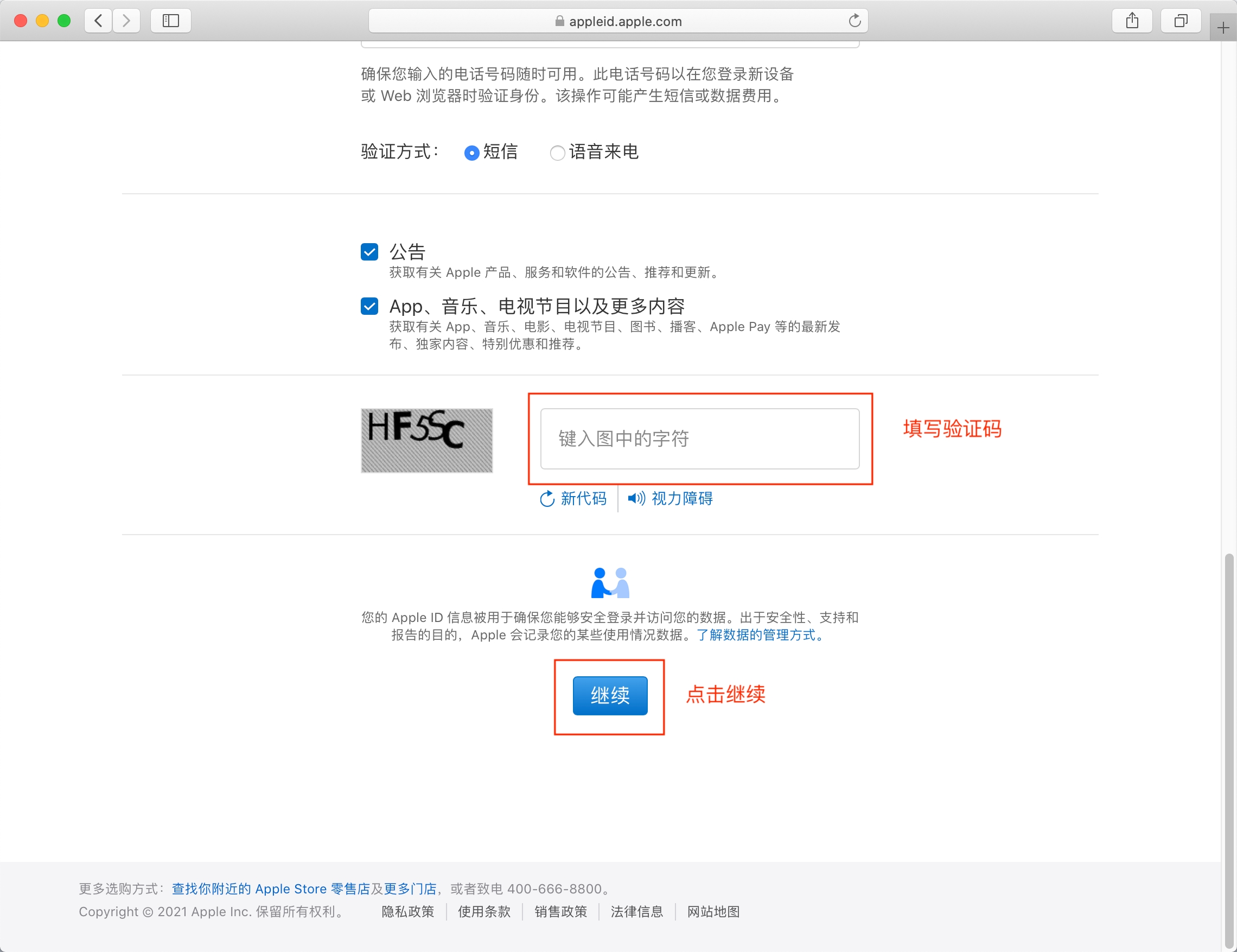3.根据图片提示,填入验证码,然后点击下方继续按钮进入下一步。